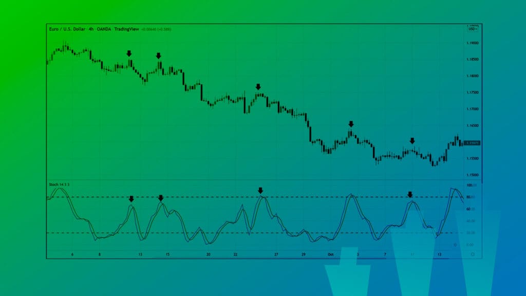 - عندما يكون المؤشر في منطقة التشبع الشراء (أكثر من 80) ويبدأ في الانخفاض، فهذا يشير إلى احتمال حدوث ارتداد هبوطي.